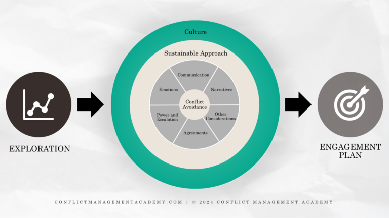 Focusing on long term strategies to manage the conflict by considering how the conflict may play out overtime. Looking at a conflict through an analytical lens and framework helps the user to determine if the issues in the conflict are suited to resolution or require alternative approaches to manage the conflict.