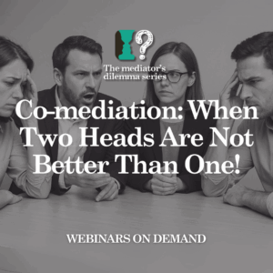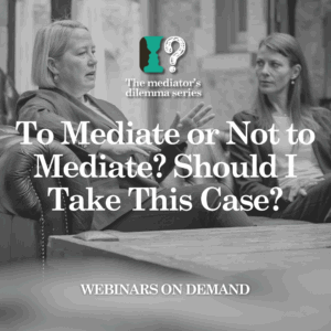 Not every mediation is a good fit—and sometimes the hardest decision is whether to say yes in the first place. In this next instalment of The Mediator’s Dilemma, we’ll explore real-world scenarios where mediators face tough calls before the process even begins. What do you do when you know one party socially? When there’s a serious power imbalance? When the dispute raises ethical concerns, or touches on your own values?