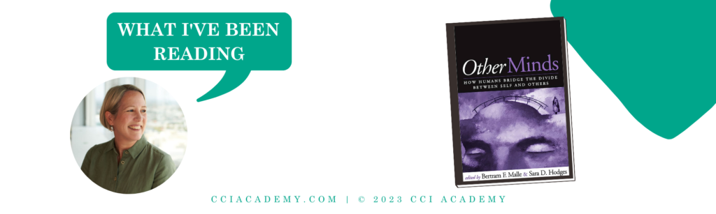 I also found a great deal of value in two of the introductory chapters: Chapter 2 “Three puzzles of mindreading” by Bertram E. Malle and Chapter 3 “A constituent approach to the study of perspective-taking: What are its fundamental elements” by Mark H. Davis.