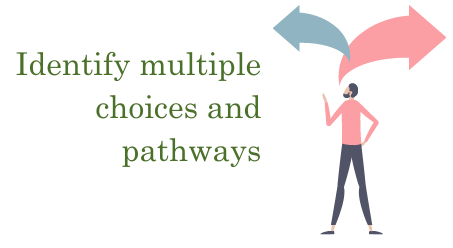 The third element is identifying choices and pathways, (what Snyder calls waypower). This involves the capacity for pathways thinking. This is the ability to come up with mental plans or roadmaps that guide helpful thought and action towards our goal. It includes the ability to anticipate roadblocks and come up with flexible strategies to continue to work towards a goal in the face of obstacles (or to come up with a variation of our goal if necessary).