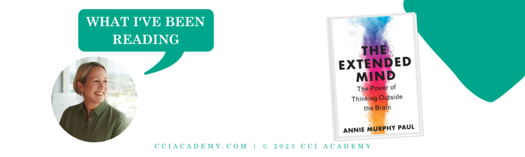 This book, subtitled “the power of thinking outside the brain” caught my attention! It complements other books I’ve reviewed recently like Mind in Motion and Thinking With Your Hands. This book is in three parts – thinking with our bodies (sensations, movement, gesture), thinking with our surroundings (natural and built spaces, the space of ideas), and thinking with our relationships (experts, peers and groups). The overall theme of the book is that we tend to think about thinking as something that happens inside our heads, but in fact we use our bodies, our environments and other people to help us think! As the author says, “elements of the world outside may effectively act as mental ‘extensions,’ allowing us to think in ways our brains could not manage on their own”!