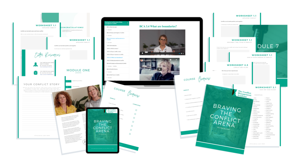 The full Braving the Conflict Arena course includes about 4 hours of video content in total (presented in short lessons of about ten minutes each). There are also activities to complete for each lesson in the workbook provided.Â