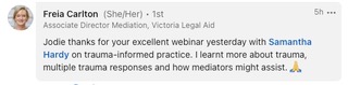 Learn how to work with clients with curiosity and develop insight into the profound impact of trauma on individuals and communities. Gain an understanding of how trauma shapes perceptions, reactions, and interactions during conflict. Discover how to ensure that your practice is trauma-informed so that you can provide a safe and supportive service.
